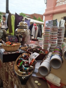 El «mercadillo vintage» tiene como fin exponer a la venta productos antiguos, ropa fuera de temporada, objetos que no se usan ya en las casas, zapatillas o artículos de segunda mano, etc., con el fin de favorecer el reciclaje. En nuestra mesa disponíamos de ropa, artículos de decoración, cuadros y también de las pulseras solidarias del programa. El éxito lo tuvo la ropa, que era muy variada y que provenía, en su mayor parte, de remanentes de tiendas que se habían quedado sin vender y que nos cedieron para la causa.