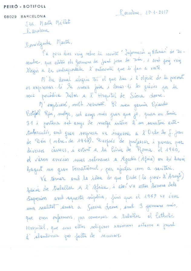 2017_02_08_carta_carmen_botifoll_foto Publicado el 8 febrero, 2017 a 631 × 893 en Carta de agradecimiento de Carmen Botifoll a Marta Millet y al programa de colaboración con Sierra Leone Carta de Carme Botifoll Carta de Carme Botifoll